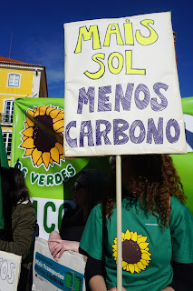 Os Verdes exigem um combate firma ao fenómeno das alterações climáticas e uma nova política energética que não esteja assente na exploração de recursos fósseis. Foram lançadas várias mensagens e palavras de ordem ao longo de todo o caminho: